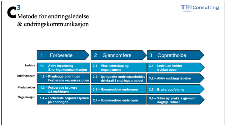 Vår implementerings styrke ligger i kombinasjonen av velutprøvd endringsmetode med sterkt fokus på kommunikasjon og formidling.